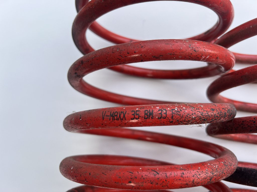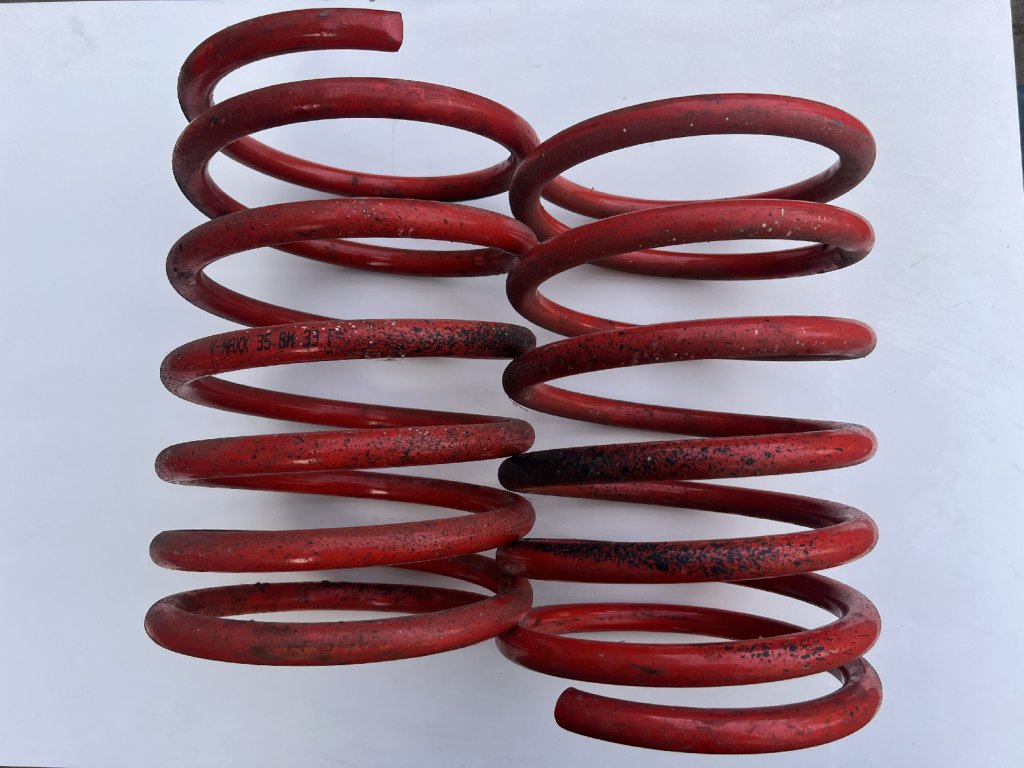 Pružiny jsou snížené o cca 35 mm, takže zlepší vzhled auta i jízdní vlastnosti. Jsou minimálně jeté – na povrchu jen drobné kosmetické stopy od používání a skladování.