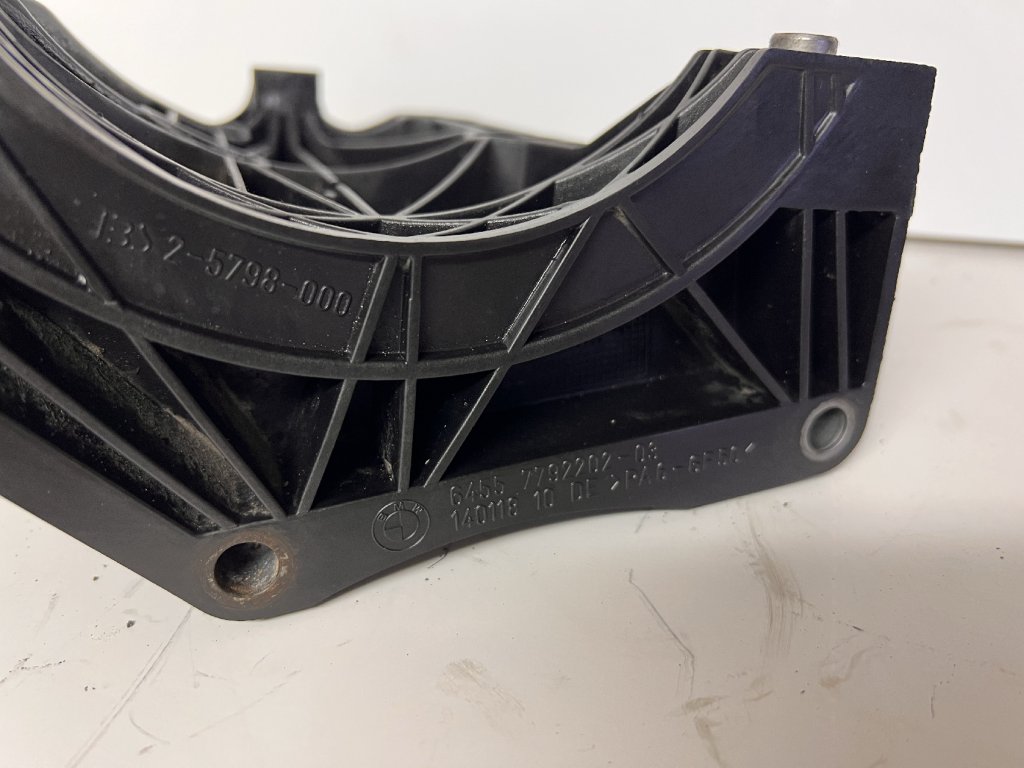 BMW 64557792202-03 je držák / konzola kompresoru klimatizace (A/C compressor mounting bracket), tedy úchyt, který schraňuje a drží kompresor klimatizačního systému v motorovém prostoru vozů BMW. Tento díl je pevnostní kovová nebo plastová konzole, která zajišťuje, aby kompresor klimatizace správně držel na svém místě a byl pevně uchycen vůči motoru nebo rámu vozu. Bez něj by mohl kompresor vibrovat nebo se posunout, což může vést k poškození klimatizačního systému.